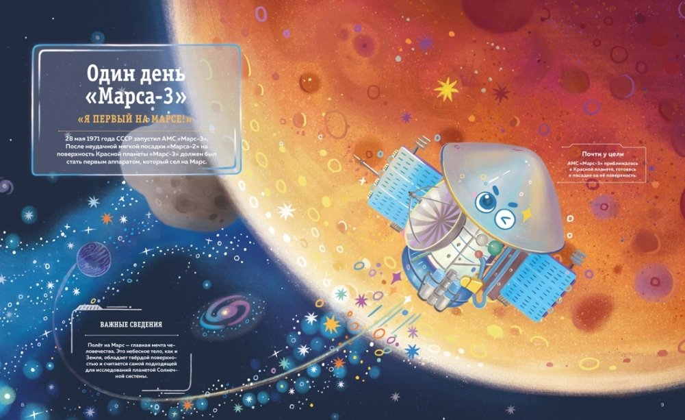 Тогда открывай эту книгу и проведи 24 часа в космосе вместе с летательными аппаратами, которые отправились в путешествие на Марс!