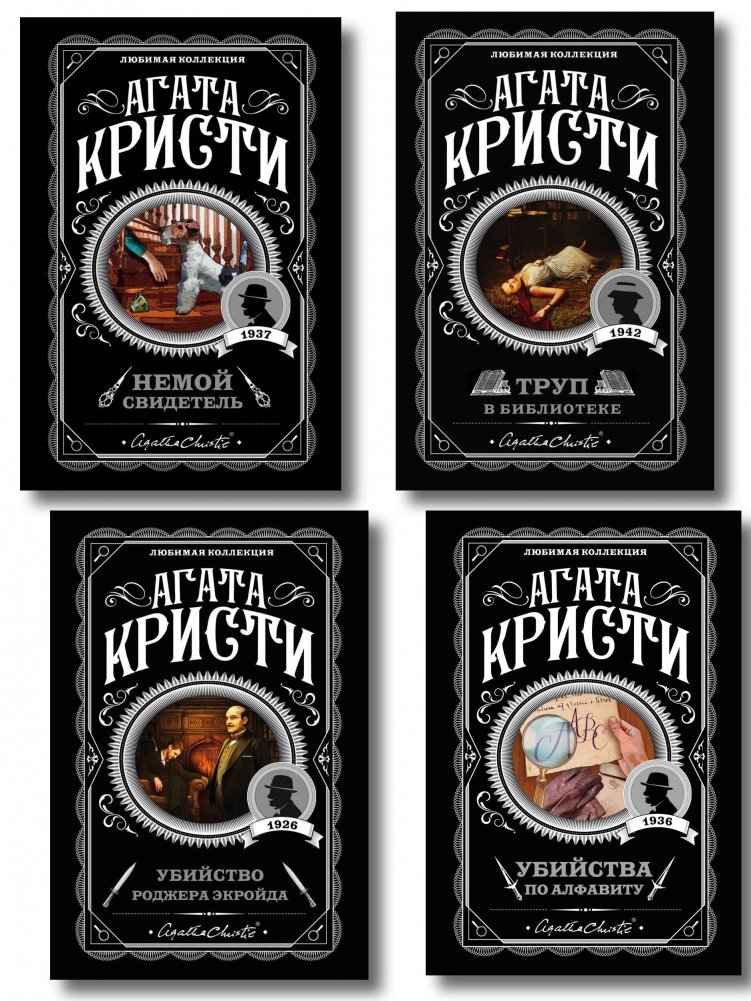 Комплект из 4-х книг (Убийства по алфавиту. Немой свидетель. Труп в библиотеке. Убийство Роджера Экройда)