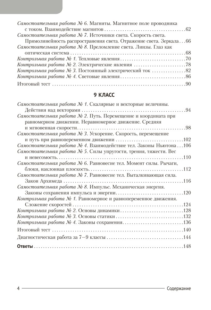 Пособие предназначено для организации и проведения контроля знаний и умений учащихся по физике. В издании для каждого класса приводится 8 самостоятельных, 4 контрольные работы и итоговый тест. В конце сборника размещена диагностическая работа за период обучения на II ступени общего среднего образования.