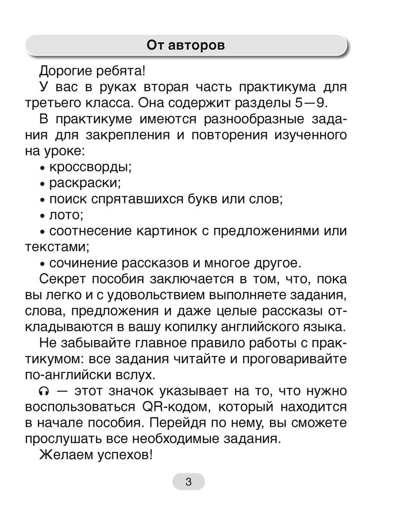 Издание дополняет учебное пособие «Английский язык. 3 класс» авторов Л. М. Лапицкой и др. Представленные задания способствуют развитию устойчивых навыков чтения и письма, а также активации грамматических структур в устной и письменной речи.