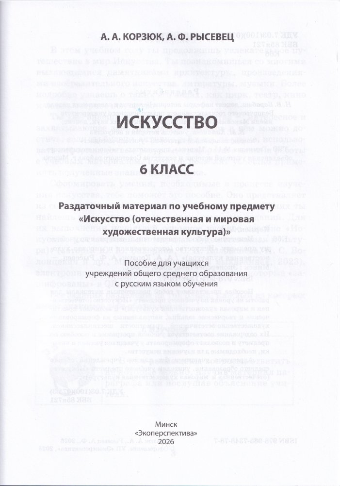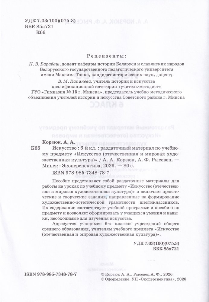 Адресуется учащимся 6-х классов учреждений общего среднего образования, учителям учебного предмета «Искусство (отечественная и мировая художественная культура)».