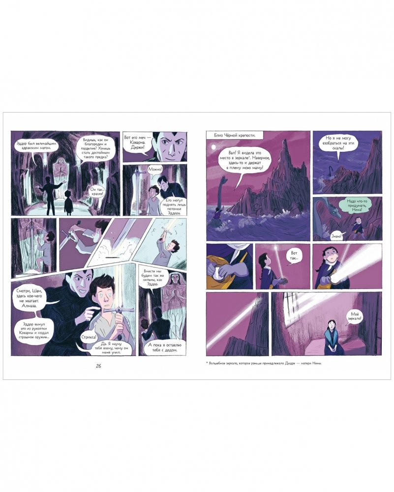 «Драконы Нальсары. Черная крепость» — третья книга комикса о драконах, магии, дружбе и семье. Красивые динамичные иллюстрации как в мультфильме и небольшие фрагменты текста — идеально для первого самостоятельного чтения.