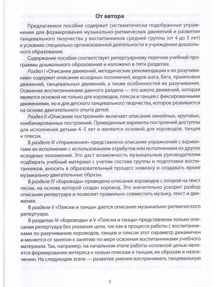 Представленные в пособии материалы направлены на реализацию компонента «Музыкально-ритмические движения и танцевальное творчество» образовательной области «Музыкальное искусство» в средней группе (от 4 до 5 лет).