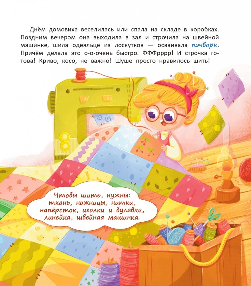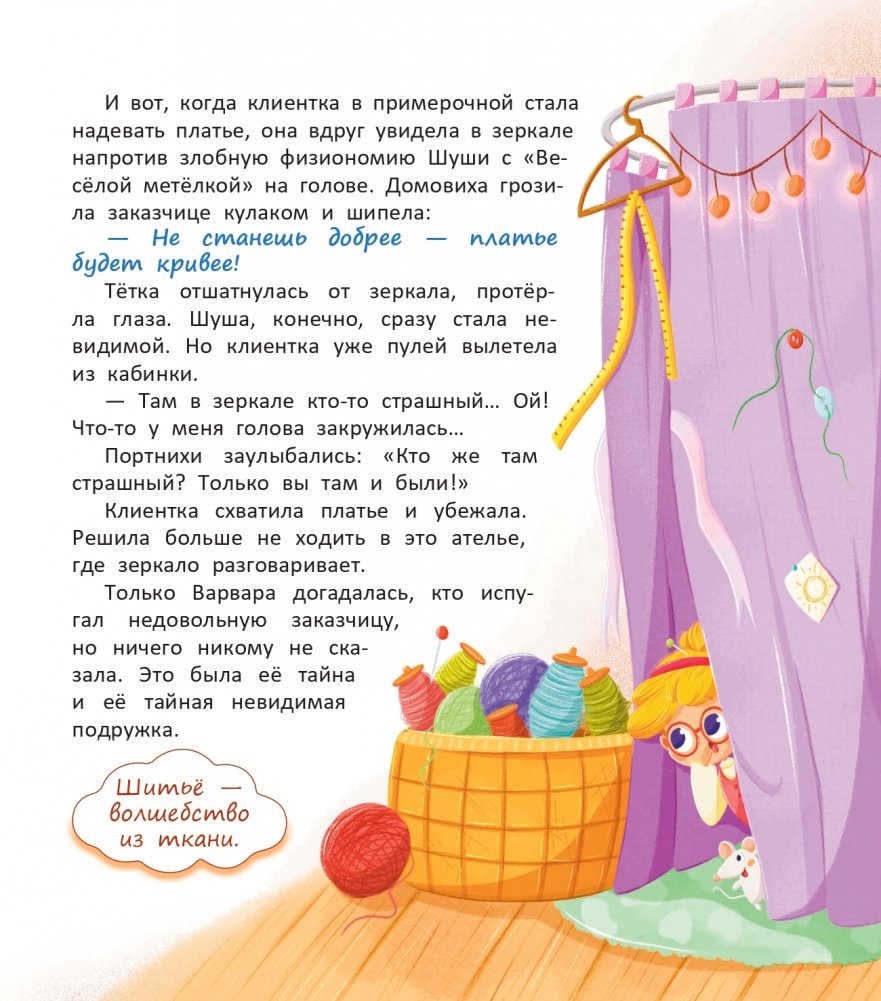 Новая книга Ирины Токаревой познакомит вас с домовихой по имени Шуша. Она живёт в ателье и обожает шить яркие наряды не только для себя, но и для других домовых. Вас ждёт множество приключений и весёлых историй, а ещё небольшие секреты швейного мастерства от маленькой портнихи.