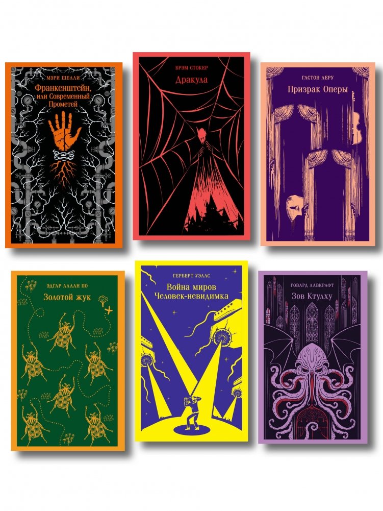 Набор "Классика ужаса" (из 6 книг: Франкенштейн, Дракула, Зов Ктулху, Золотой жук, Призрак Оперы, Война миров. Человек-невидимка)