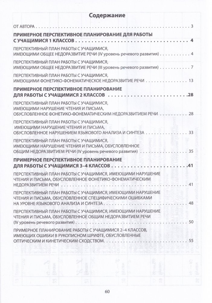 Пособие предназначено для коррекционной работы с учащимися 1-4 классов, которые имеют различные нарушения чтения и письма и посещают пункт коррекционно-педагогической помощи. В пособии представлено примерное планирование с последовательным перечислением тем, необходимых для рассмотрения в ходе такой работы, задач, которые при этом могут быть решены, и рекомендационных указаний на дополнительные сведения и виды деятельности. Изложение планов ведется по принципу постепенного усложнения материала с учетом типа речевого нарушения и возраста ребенка.