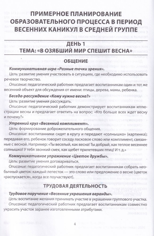 Планирование образовательного процесса в период весенних каникул : средняя группа (4-5 лет), старшая группа (5-7 лет). Учебно-методическое пособие для педагогических работников учреждений дошкольного образования