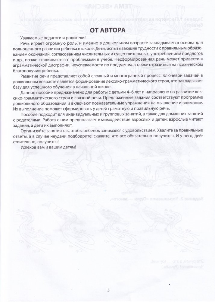 Пособие направлено на развитие лексико-грамматического строя и связной речи у детей 4-6 лет. Предложенные задания соответствуют программе дошкольного образования и включают познавательные упражнения на мышление и внимание. Их выполнение поможет сформировать у детей грамотную и правильную речь, что станет основой для успешного обучения в начальной школе.