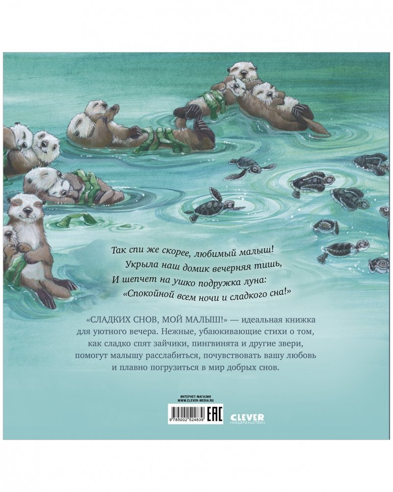 «Сладких снов, мой малыш!» — идеальная книжка для уютного вечера. Нежные, убаюкивающие стихи о том, как сладко спят зайчики, пингвинята и другие звери, помогут малышу расслабиться, почувствовать вашу любовь и мягко окунуться в мир добрых снов.