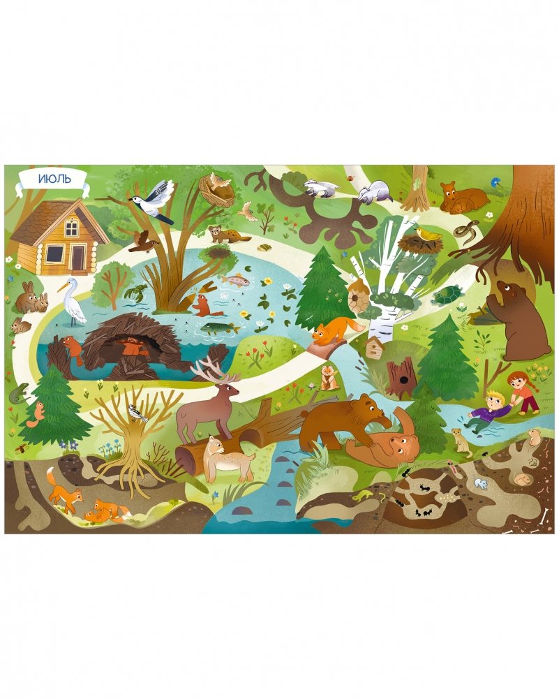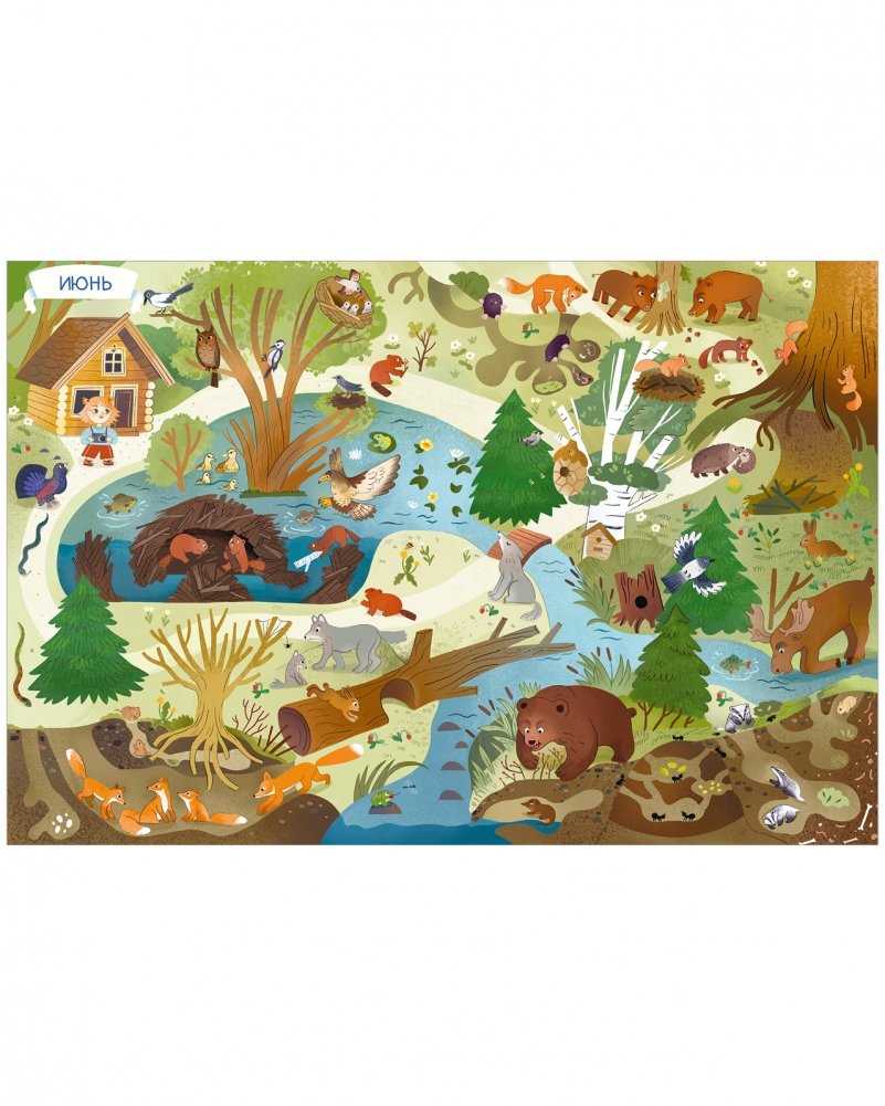 На страницах этой книжки для малышей ваш ребенок познакомится с обитателями леса и их привычками, узнает, как меняется природа каждый сезон, выучит названия месяцев и проверит свою внимательность. Благодаря крупному формату книжки для детей вы сможете рассмотреть каждую деталь на больших картинках.