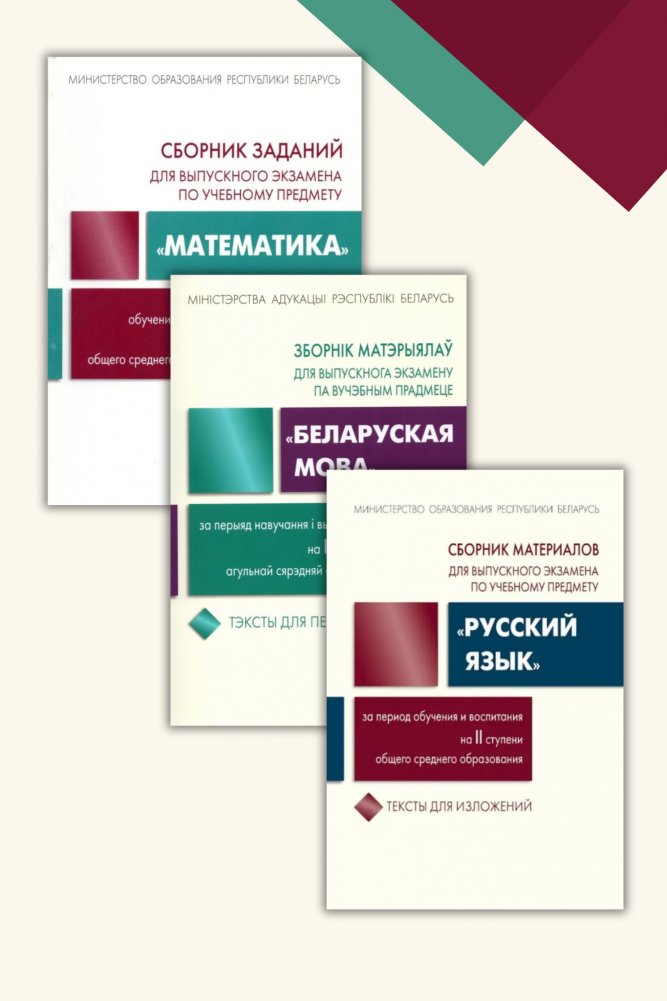 Комплект сборников заданий для выпускных экзаменов по учебным предметам "Математика", "Русский" и "Беларуская мова".