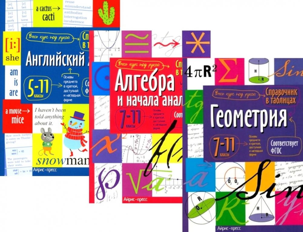 Хотите, чтобы ваш ребенок успешно справился с ОГЭ и ЕГЭ? Для этого необходим надёжный и незаменимый помощник. Таким помощником и идеальным инструментом для учеников средней и старшей школы станет комплект справочников по алгебре, геометрии и английскому языку, который содержит структурированный материал для подготовки к экзаменам, контрольным и проверочным работам. Этот комплект — хорошая «шпаргалка», содержащая основные правила, законы и формулы для решения различных задач.