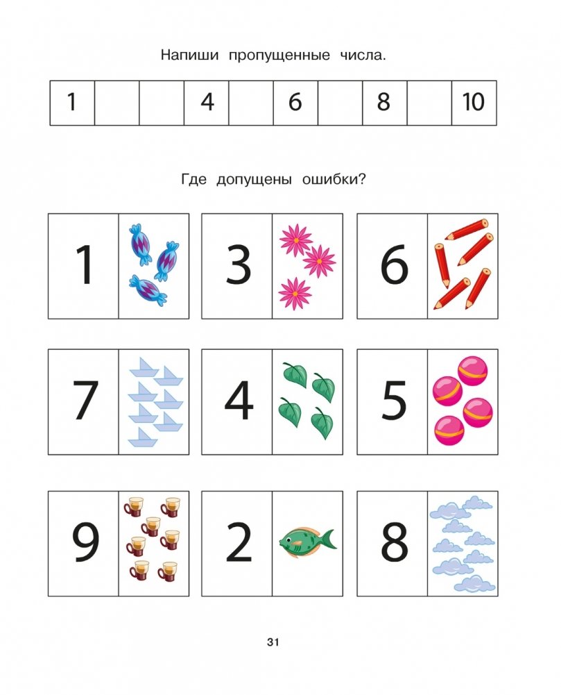 Система упражнений развивает всё, что потребуется в первом классе: от написания цифр до решения задач на сложение и вычитание. А картинки любимых героев фильма помогут ребёнку удерживать внимание на заданиях.