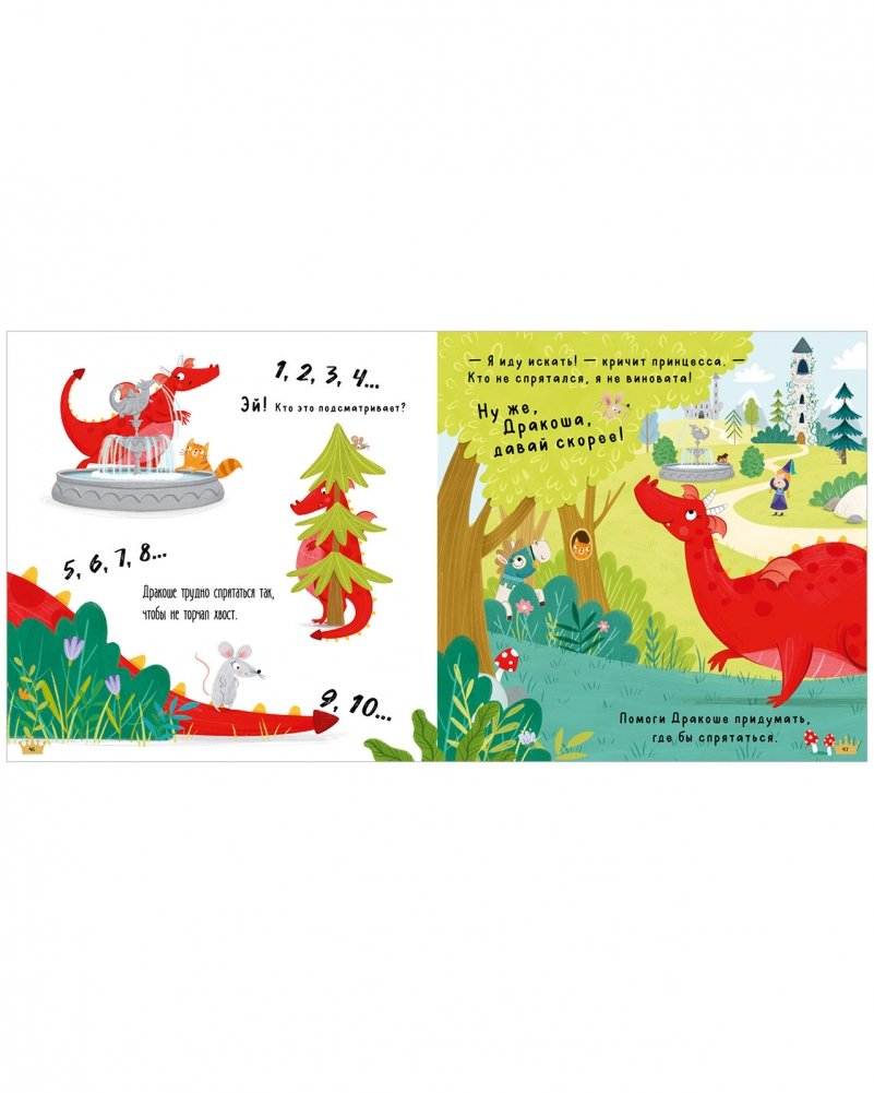 Каждая история приглашает ребенка поучаствовать в сюжете: нужно потанцевать и потопать ногами, чтобы развеселить Дракошу, посчитать до десяти вместе с героиней и помочь ей спрятаться, погладить Дракошу. Эта книжка для малышей поможет ребенку поиграть и одновременно научиться справляться со своими эмоциями, дружить и делиться.