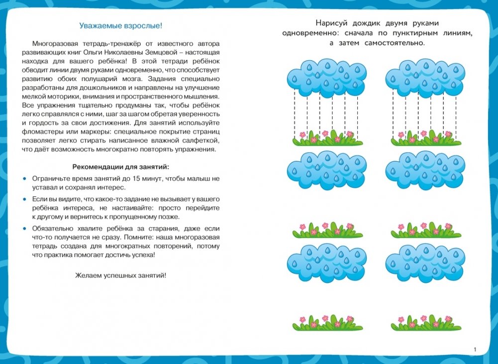 Многоразовая тетрадь разработана известным педагогом и автором развивающих пособий О. Н. Земцовой специально для того, чтобы сделать процесс обучения дошкольников по-настоящему интересным и удобным.