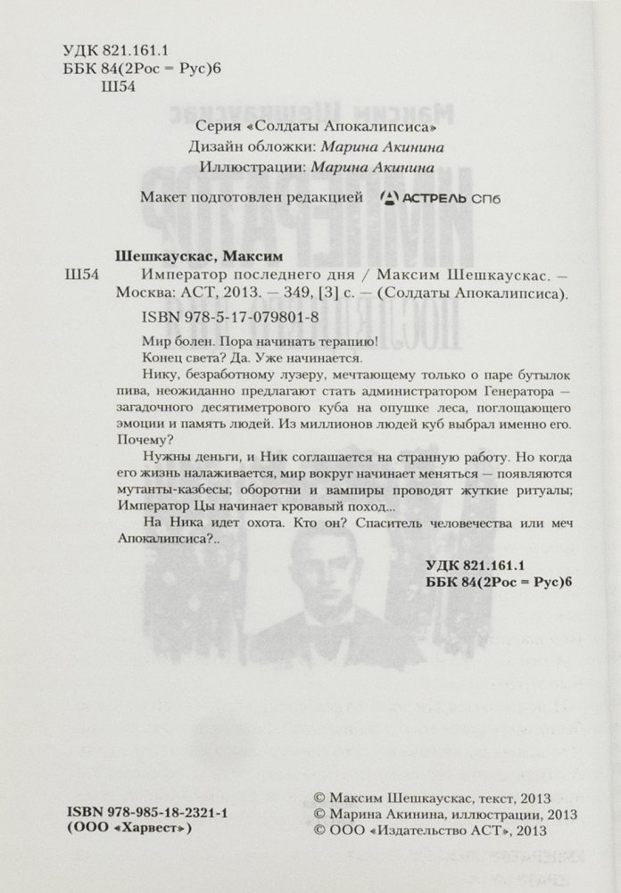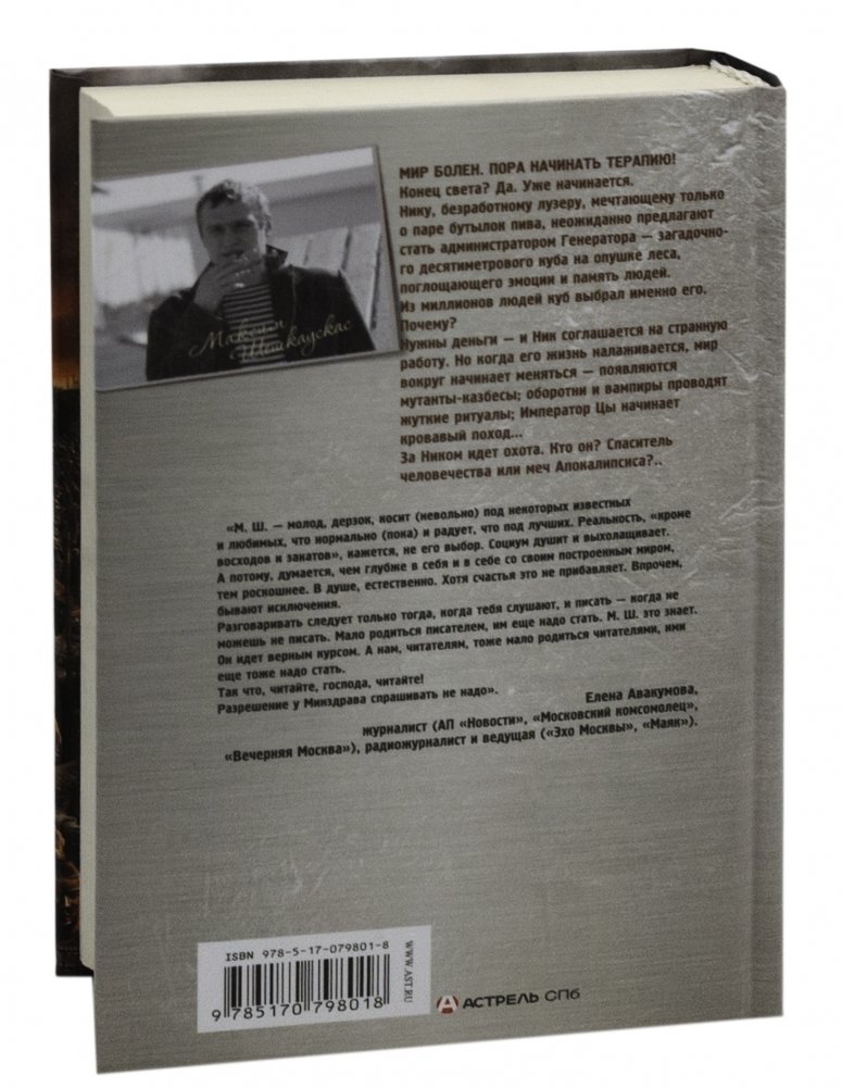 Мир болен. Пора начинать терапию! Конец света? Да. Уже начинается. Нику, безработному лузеру, мечтающему только о паре бутылок пива, неожиданно предлагают стать администратором Генератора - загадочного десятиметрового куба на опушке леса, поглощающего эмоции и память людей. Из миллионов людей куб выбрал именно его. Почему? Нужны деньги, и Ник соглашается на странную работу. Но когда его жизнь налаживается, мир вокруг начинает меняться - появляются мутанты-казбесы; оборотни и вампиры проводят жуткие ритуалы; Император Цы начинает кровавый поход... На Ника идет охота. Кто он? Спаситель человечества или меч Апокалипсиса?..