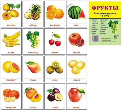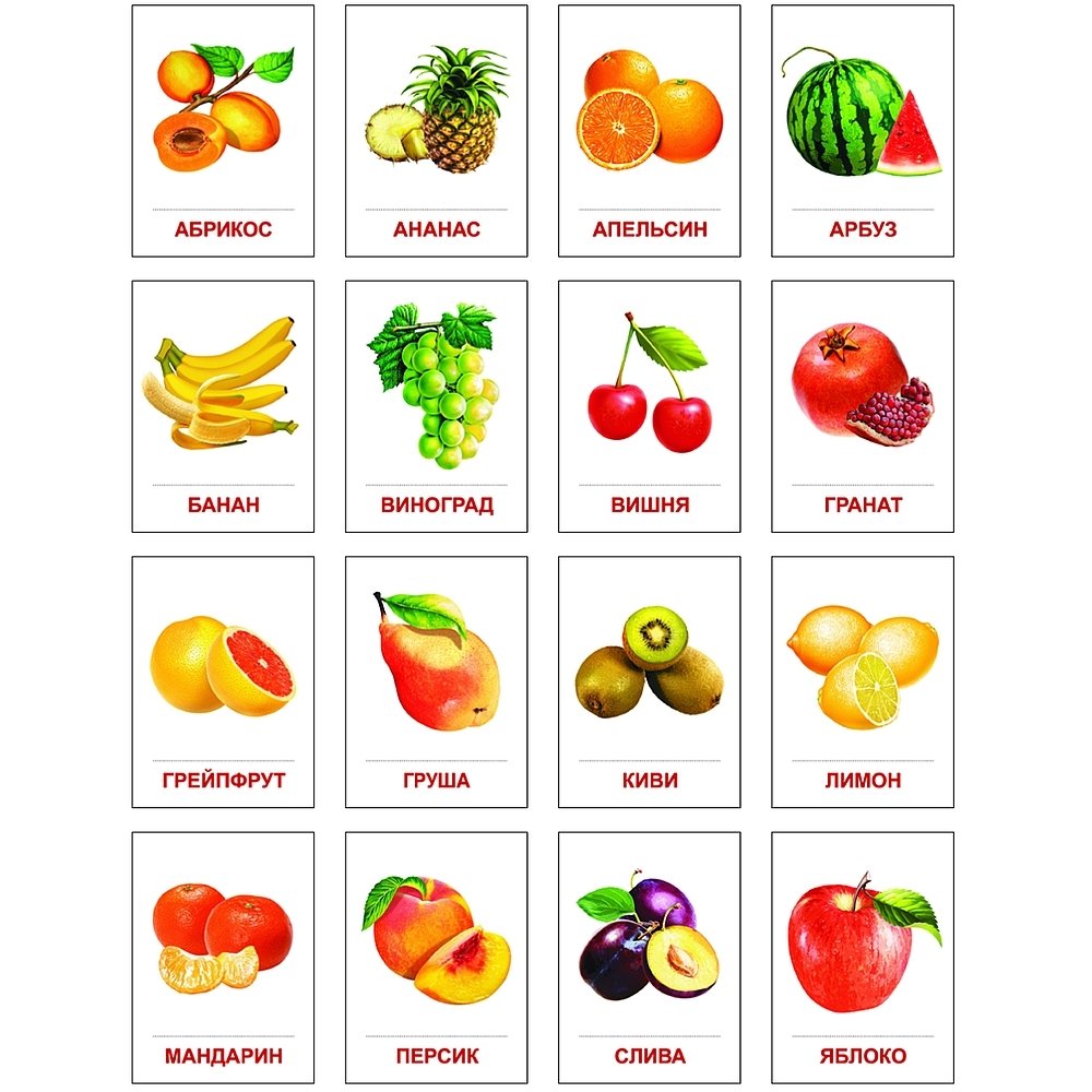 Демонстрационные картинки Супер. Фрукты. 16 раздаточных карточек с текстом