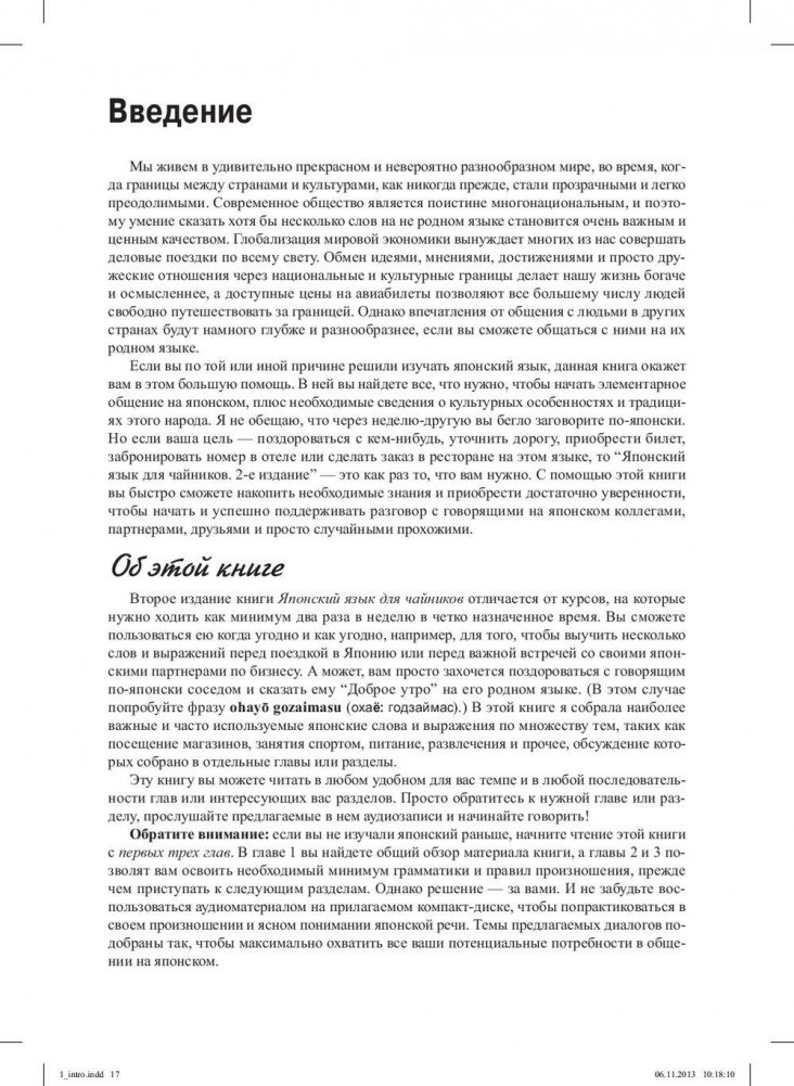 Вы собираетесь в поездку за рубеж и вам нужен японский, чтобы общаться, путешествовать или даже получить там работу? В этом удобном руководстве вы найдете необходимый минимум для быстрого овладения языком, включая основы японской письменности и правила чтения, грамматику, сведения об использовании основных языковых конструкций и минимальный словарный запас. Кроме того, здесь есть подсказки по произношению, мини-словари, а также множество полезных советов, охватывающих различные сферы жизни — от ведения светской беседы и использования телефона до питания вне дома и шопинга.