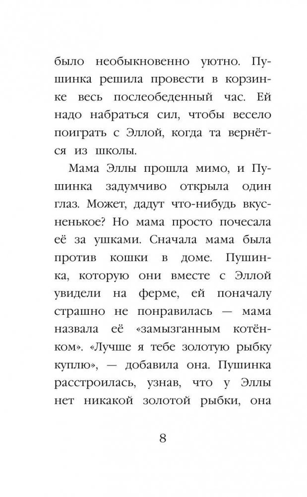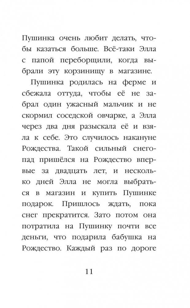 Все самые важные события в жизни кошечки Пушинки случались в снегопад. Сначала она убежала со своей родной фермы, попала в жуткую метель, заблудилась и только чудо привело её к дому девочки Эллы. Теперь же Пушинка вышла прогуляться – и из-за вьюги снова заблудилась. Кошечка нашла приют в заброшенном доме и обнаружила там совсем крохотного белоснежного котёнка. Пушинка попыталась помочь малышу – накормить и обогреть, но очень скоро поняла, что одна не справится. Теперь Пушинке предстоит выбраться через глубокий снег, найти любимую хозяйку и привести её на помощь. Может быть, кошечке и её новому другу поможет зимнее волшебство?