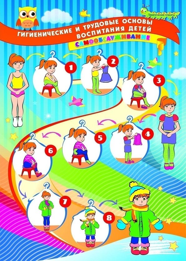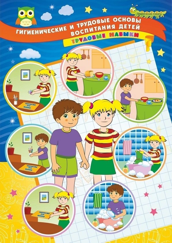 Гигиенические и трудовые основы воспитания детей дошкольного возраста (2-3 года). Комплект из 4 плакатов с методическим сопровождением. ФГОС ДО