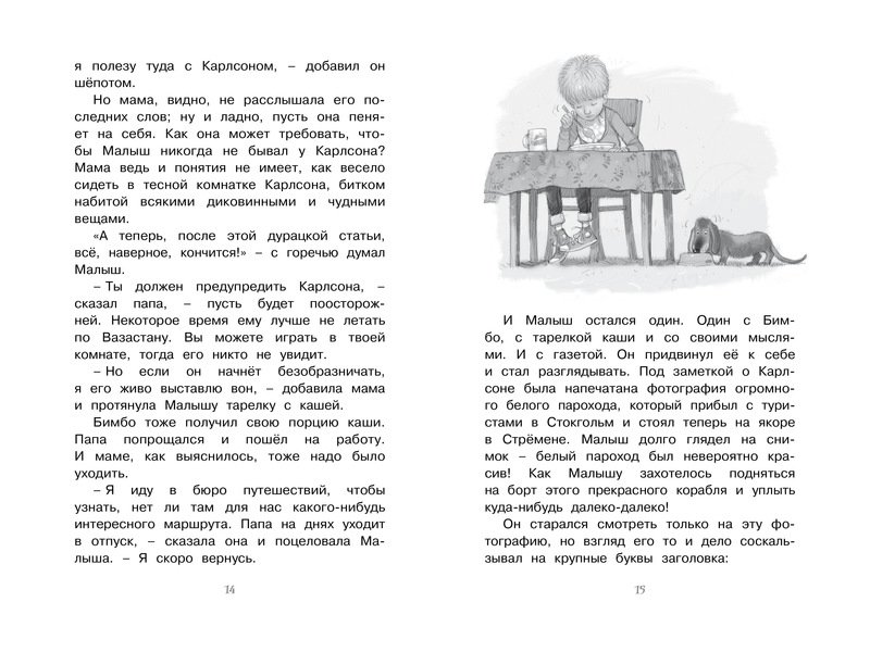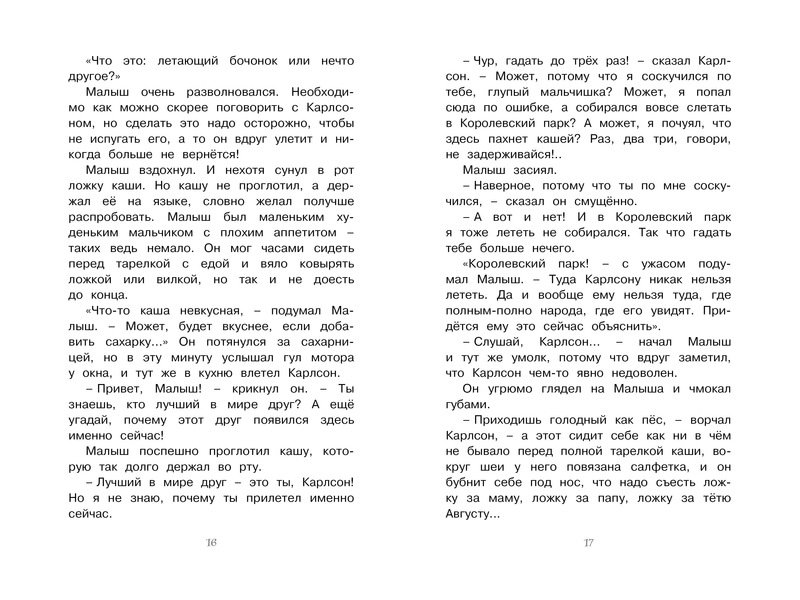 Нет тебе покоя, если ты дружишь с Карлсоном! Потому что он горазд на выдумки и может превратить твой день в тарарам, а потом вдруг вспомнить, что у него дела, и улететь. И тогда тебе ничего не остаётся, как ждать. Ждать, когда он снова прилетит, чтобы вместе попроказничать. Третья книга трилогии про Малыша и Карлсона замечательной шведской писательницы АСТРИД ЛИНДГРЕН. В книге есть вступительная статья о её творчестве.