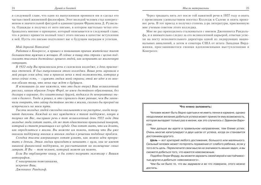 Книга давно получила статус непревзойденного классического учебника и до сих пор служит стандартом для так называемой мотивационной литературы. Теперь ее текст укомплектован кратким, но доступным и исчерпывающим руководством по изучению и применению блестящих и плодотворных идей автора в ваших повседневных делах. Освоив сполна эту важную науку, вы сумеете достичь успеха на пути к богатству и счастью.