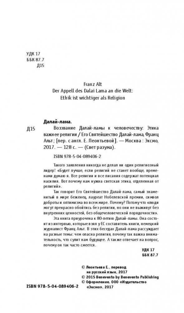 Воззвание к человечеству: этика важнее религии