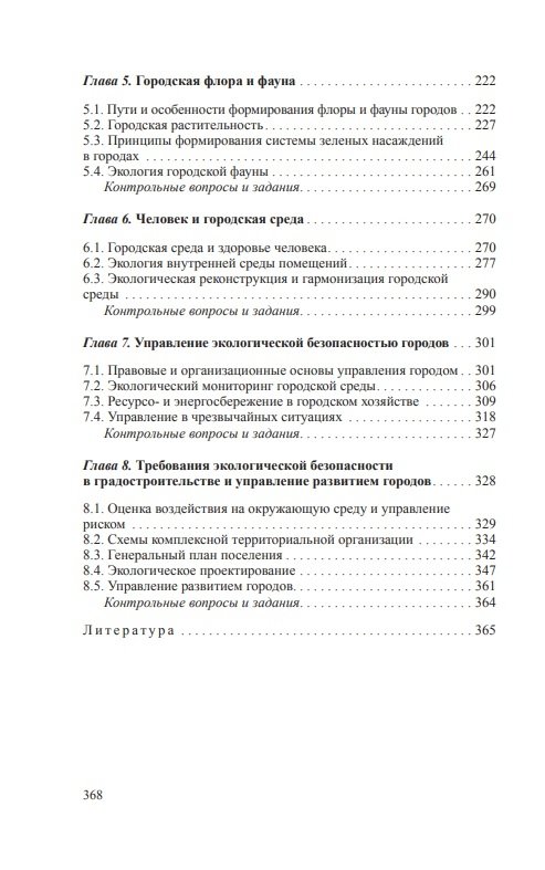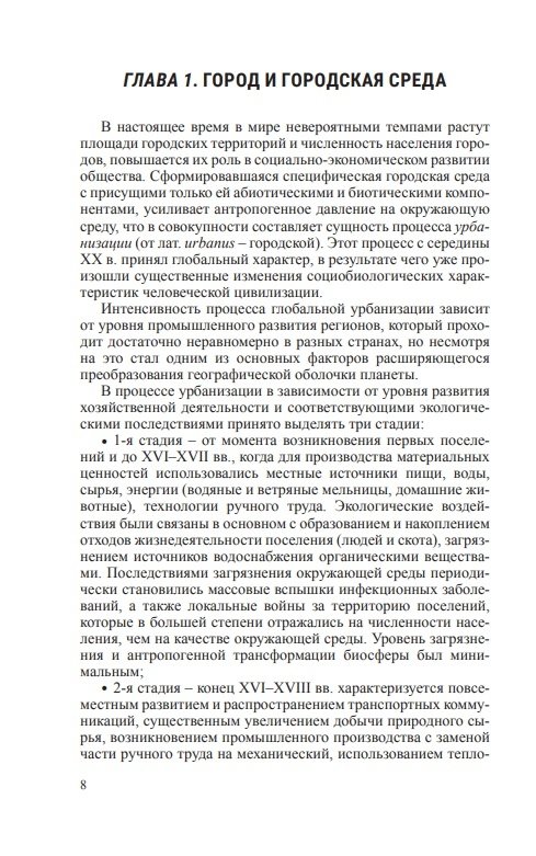 Рассмотрены особенности городских экосистем, теория и практика трансформации городской среды, описаны методы оценки, оптимизации и ее устойчивого развития. Приведены требования экологической безопасности в градостроительстве и управлении развитием городов.